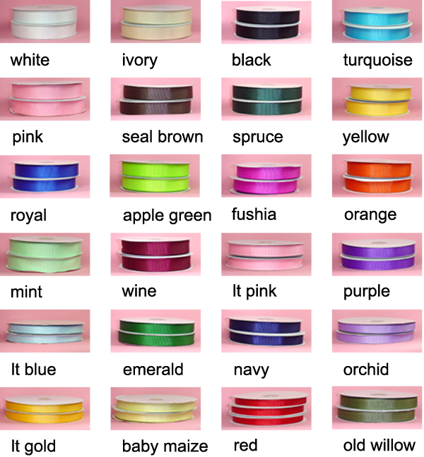 Orange (12), Mint (13), Wine (14), Lt Pink (15), Purple